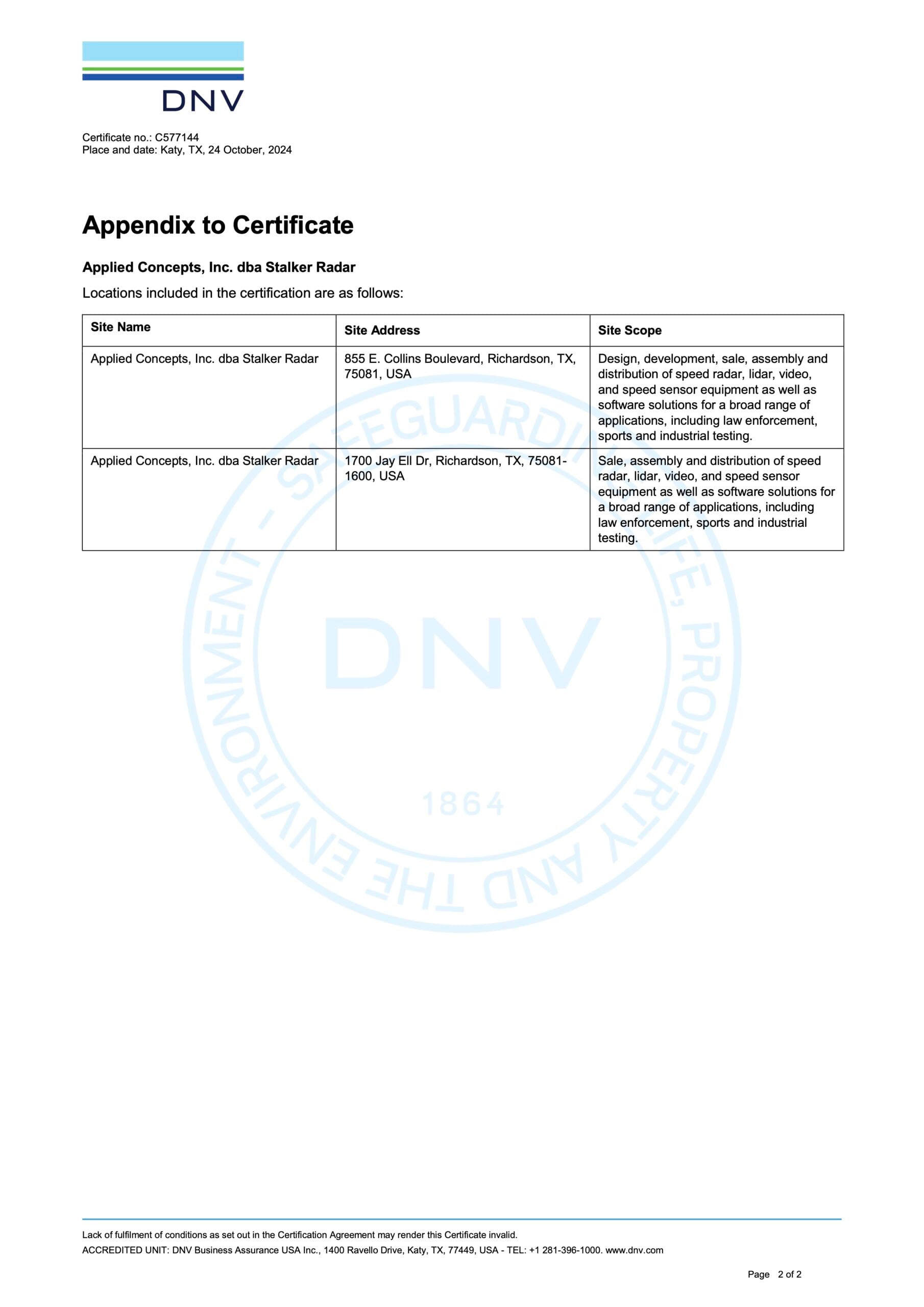 Stalker Radar is an ISO 9001 registered company. Our quality management system is independently audited to ensure our processes are defined, controlled, and continually improved. This registration reflects our commitment to disciplined operations, consistent execution, and continuous improvement in how we serve our customers.